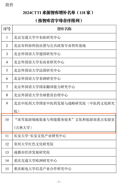 本届论坛公布中国智库索引(Chinese Think Tank Index,简称CTTI)2024年度增补来源智库名单,经南京大学中国智库研究与评价中心组织专家从智库的基础建设、课题与项目、决策咨询、理论创新和舆论引导、内部治理、个性特色等方面认真审核和筛选,“冰雪旅游场地装备与智能服务技术”文化和旅游部重点实验室(威廉希尔WilliamHill官方网站)从264家申报智库中脱颖而出,成功入选CTTI来源智库。入选理由如下:公司冰雪旅游实验室深入践行“冰天雪地也是金山银山”理念,所研究的“中国冰雪系列指数”成果在海内外产生了广泛的影响,发出了中国声音,并在冰雪经济研究领域构建了具有自主知识产权体系。此次成功入选CTTI来源智库标志着依托公司建设的文旅部冰雪旅游重点实验室迈入了一个更高的发展平台和崭新的发展阶段,在全国冰雪经济和技术研究领域成功塑造了具有显著影响力的“吉大声音”“吉大风格”和“吉大品牌”。