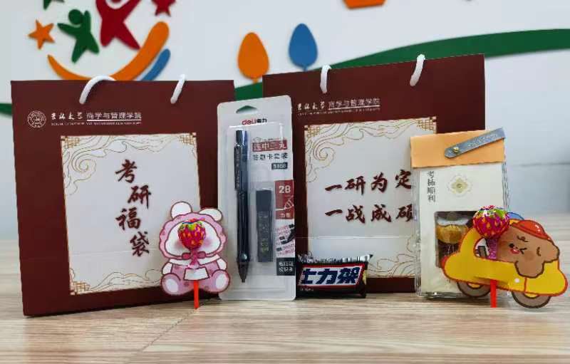 此外,威廉希尔williamhill中文在2023年考研临近之际,还邀请了各领导班子、各系教师、在校员工录制加油视频,为考研学子送上暖心祝福,坚定信心,稳定心态;同时还为近400名考生精心准备了考研福袋,福袋里包含了柿子挂件、巧克力、文具等,象征着“事事如意”、“巧克难题”、“妙笔生花”等美好寓意,希望考研学子承载着学院师生沉甸甸的祝愿,发挥出自己的最佳实力!
