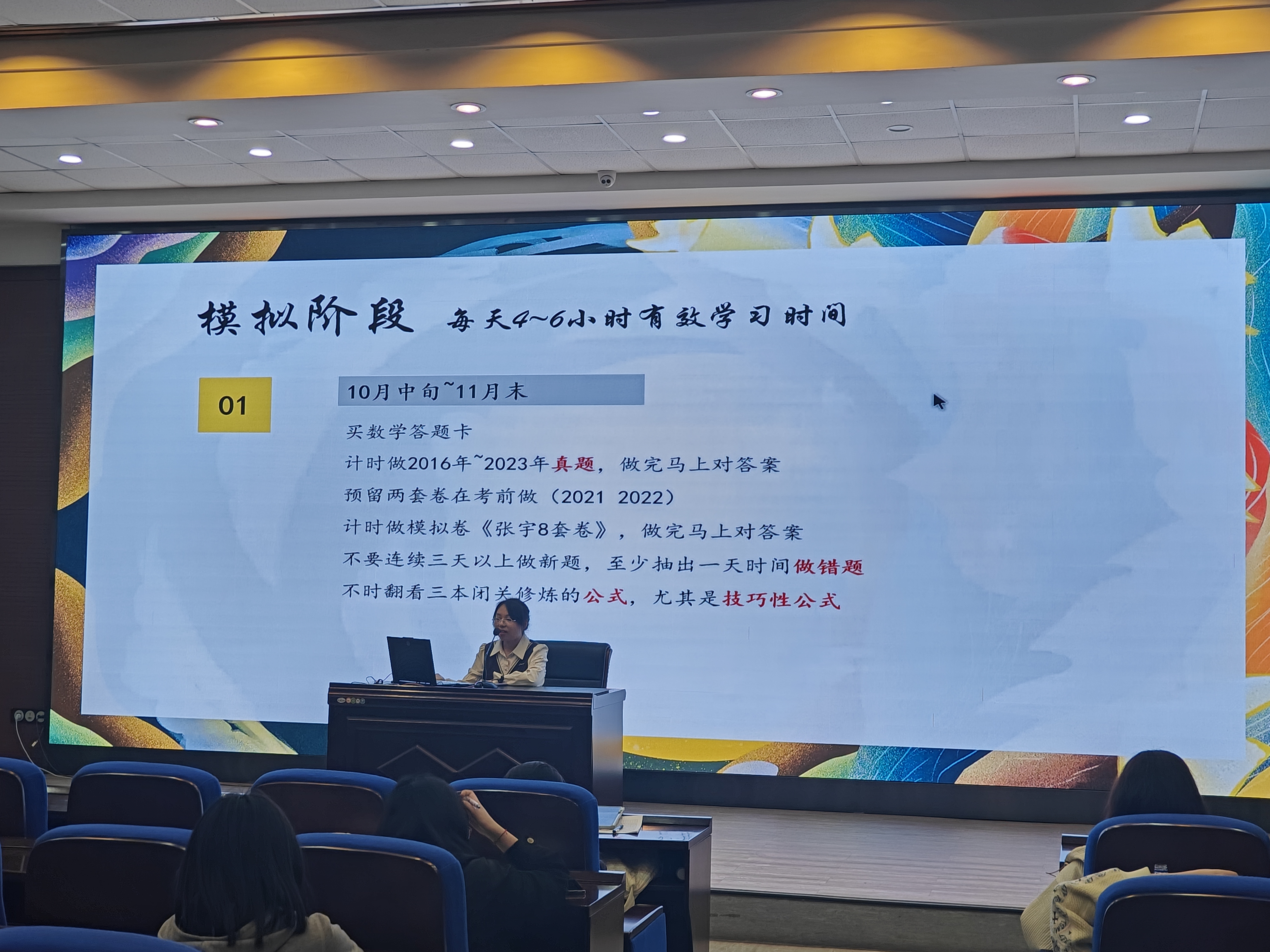 在分享过程中,学长学姐们分别从留学,推免,保研,考研及就业等多个方面为学弟学妹们分享经验,并耐心解答他们的疑问。王北鸽学姐详细地分享了出国留学需要准备的各种事项,并交流了留学国家,学校的选择问题,学姐还建议有意留学的员工需要提前做好语言和文化准备,提前备考雅思托福,以更好地适应海外生活和学习。惠佳琳学姐分享了关于保研院校的选择以及夏令营的申报等方面的经验。刘桓妤学姐同样分享了关于留学方面的经验,它不仅分享了自己大学四年不同阶段的规划,还从细节入手,分阶段给出了具体的规划建议,同时介绍了不同留学策略的优略势。卢慧颖学姐详细地为大家分析了学校关于直博保研的相关政策,并为大家辨析了直博和保研的不同之处,使我们对自己的学业规划有了更清晰的认识。最后,王秋凝学姐以自己过去一年的亲身备战考研经历为我们分享了备战考研不同阶段需要做的事,从细节入手,详尽地分享了自己在不同备战阶段每天的时间分配,并推荐了相关学习资料,给大家提供了重要的帮助。