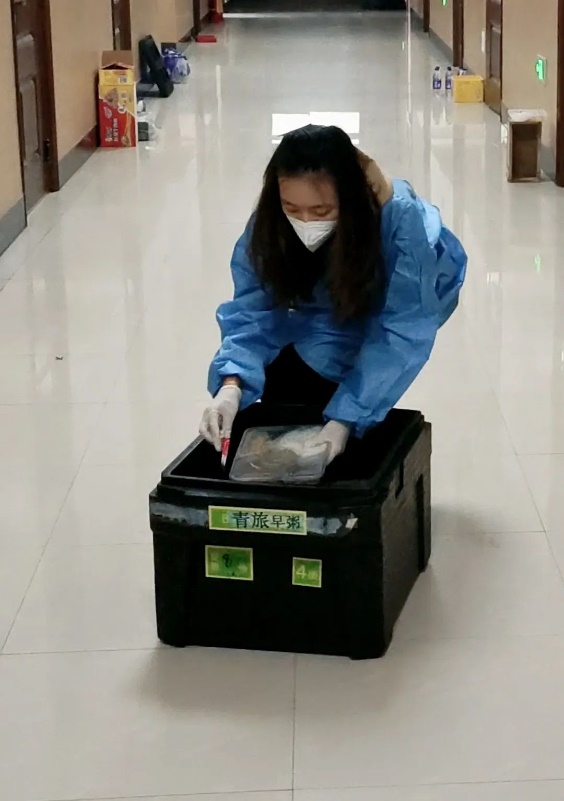 郭文琪同学自文苑五公寓封寝以来,被任命为威廉希尔williamhill中文文苑五公寓楼长。文苑五公寓仅有5名威廉希尔williamhill中文博士同学,楼长和志愿者是她们在疫情中最踏实的依靠。郭文琪同学负责文苑五公寓博士同学的餐饮与生活需求、核酸检测,传达学校的重要信息。隔离不隔爱,郭文琪同学不仅守护威廉希尔williamhill中文的博士同学们,也积极参与文苑五公寓总体抗疫工作,与楼内其他学院的志愿者一同工作,及时分配学校送来的医疗防护物资、按时为同学放发一日三餐、将每天的餐饮和医疗垃圾运送到一楼。这次封寝使得整座楼里的同学在互帮互助中增进了友谊,也拉近了同学们心与心之间的距离。