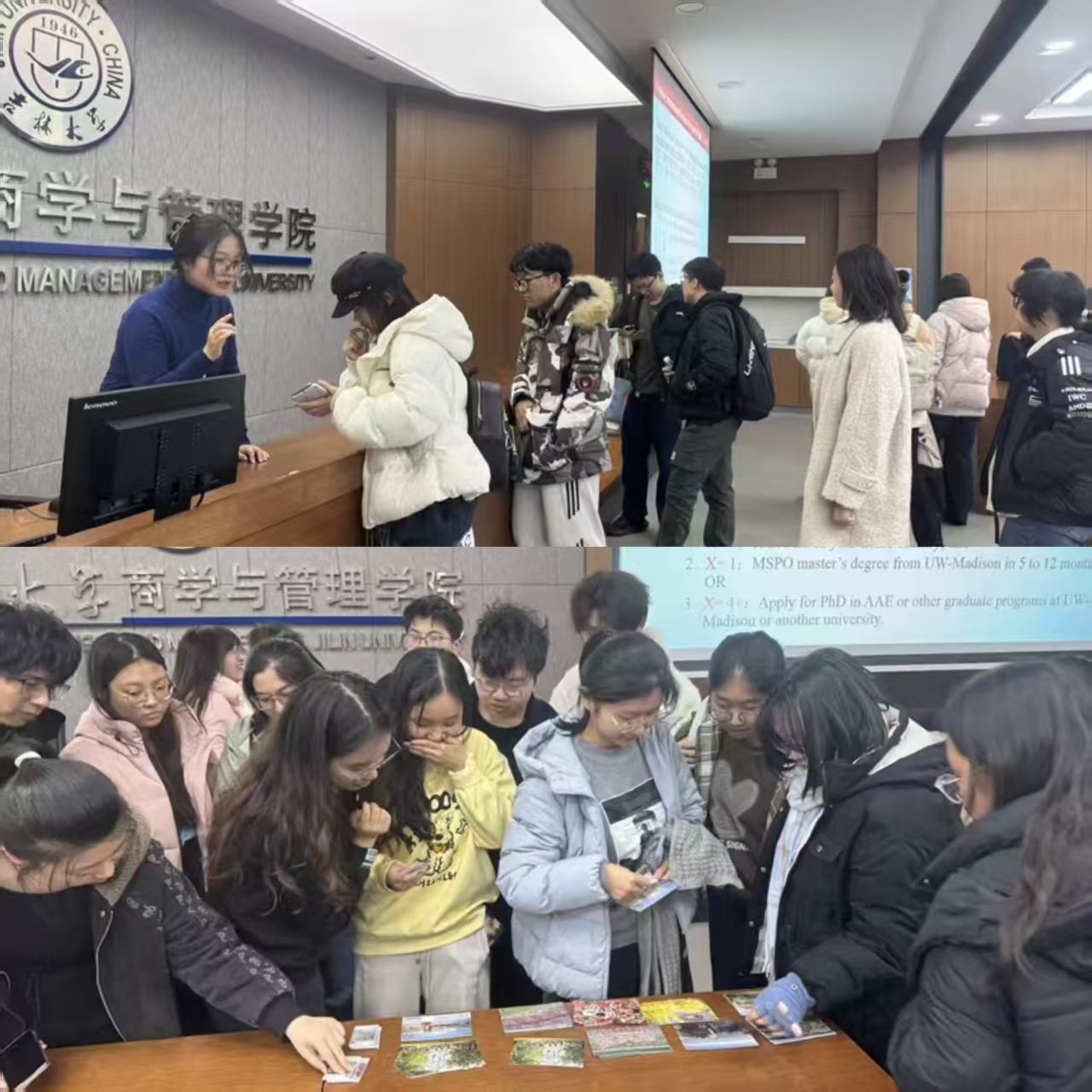 在互动环节中,同学们围绕申请条件、奖学金政策、课程安排与就业前景等问题踊跃提问。袁若寒老师进行了细致解答,现场气氛融洽而热烈,帮助同学们深入了解国际学习路径与未来发展方向。本次宣讲活动不仅进一步推动了吉大商管学院与威斯康星大学麦迪逊分校的人才培养合作,也为有海外深造意向的员工提供了有益的参考与启示。