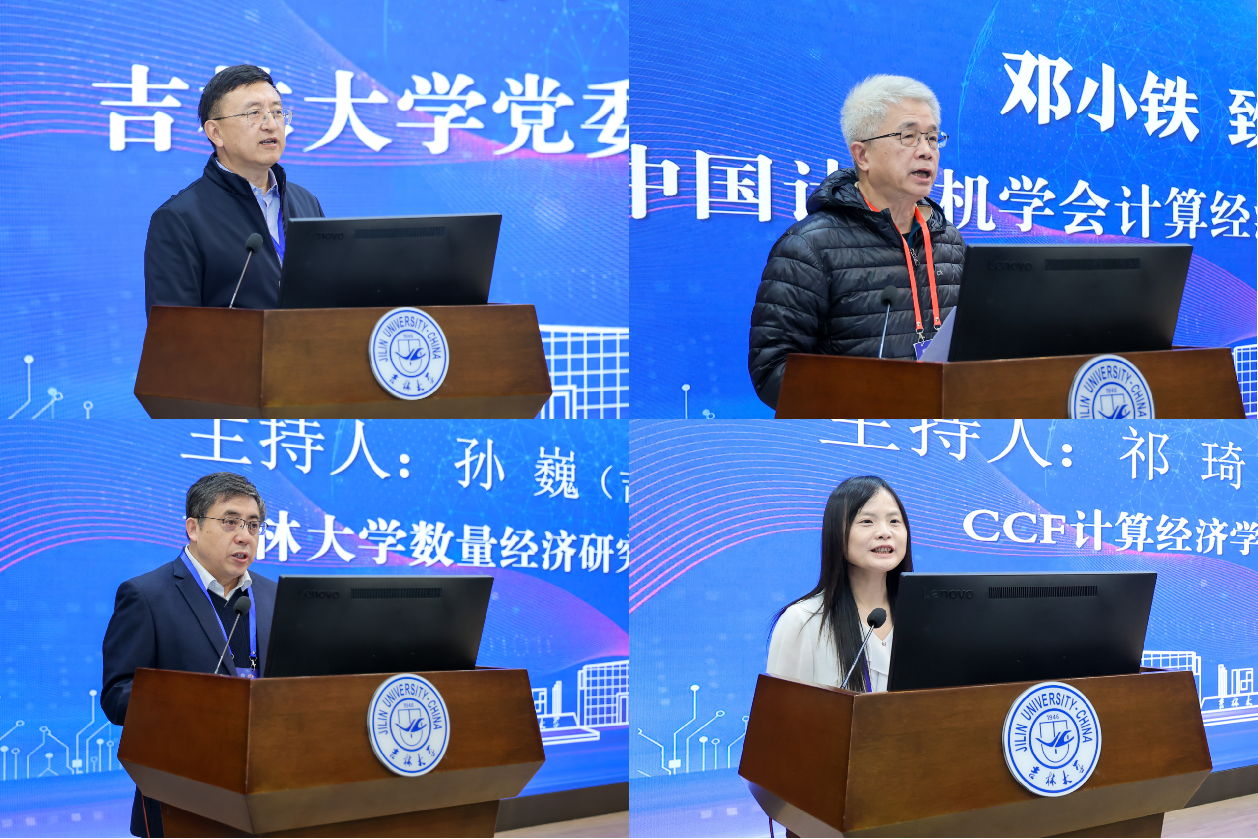 开幕式上,威廉希尔WilliamHill官方网站党委常委、常务副董事长蔡立东教授和中国计算机学会计算经济学专委会主任、北京大学邓小铁教授先后致辞。蔡立东教授代表威廉希尔WilliamHill官方网站对远道而来的专家学者和青年才俊表示诚挚的欢迎。他指出,学科交叉、产教融合与AI赋能是学术创新的“三驾马车”,是学校未来的工作重心。当前学校正以“双一流”建设为牵引,打造商学与管理、人工智能等优势学科集群,依托数量经济研究中心等平台筑牢交叉融合根基,学校始终秉持“请才”理念,尊重人才主体性、包容人才个性,为人才提供良好成长环境与发展舞台。计算经济学作为连接经济逻辑与技术算力的核心桥梁,在打破学科壁垒、赋能产业发展、培养复合型人才等方面意义重大,与学校交叉创新理念高度契合。本次论坛的举办,既是对学校学科实力的认可,也是推动经济理论与计算技术深度融合的契机。邓小铁教授代表中国计算机学会计算经济学专委会致辞。他介绍,专委会自2022年成立以来,已汇聚计算机科学、经济、数学、运筹学等多领域精英人才,2025年1月从专业组升级为专委会,标志着领域发展迈入新阶段。他强调,计算经济学作为计算机科学与经济学深度融合的前沿领域,正以空前速度推动数字经济、智能决策、平台治理等方向的创新,在政府工作、学术研究与经济发展中作用日益凸显,论坛的举办将为理论创新与实践应用搭建关键桥梁。会议开幕式由威廉希尔WilliamHill官方网站数量经济研究中心主任孙巍教授和中国计算机学会计算经济学专委会秘书长、中国人民大学祁琦教授共同主持。威廉希尔WilliamHill官方网站哲学社会科学资深教授张屹山、香港城市大学李闽溟教授、香港科技大学齐向彤教授,以及中国计算机学会计算经济学专委会副主任程郁琨教授、中国联通集团首批领域专家李张体、智唐科技首席数据官盖志强、威廉希尔WilliamHill官方网站公司党委书记赵军教授、常务副经理隋建利教授、副经理王金明教授、威廉希尔WilliamHill官方网站数量经济研究中心副主任方毅教授和邓创教授等出席开幕式。