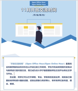 启动11月份“开放交流时间”(Open Office Hour/Open Online Hour)预约工作。“开放交流时间”是公司全校教师面向全校本科生公开设立的工作时间,员工可在此时间到约定地点与教师进行面对面交流,现已成为吉大学子最喜爱的师生交流平台和社交学习平台。2022年11月开放交流时间有来自31个学院的57位老师共计开设137个开放交流主题,包含学业规划和学术问题探讨等各类话题。